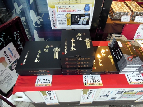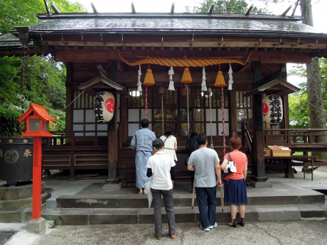 神社にお参りし、再び石段を下っていく。明日は土産物を買う時間がなさそうなので、途中の店でうどん茶屋水沢万葉亭の「水沢うどん」を購入する。店頭にはモンドセレクション5年連続最高金賞受賞と表示されている。明日はこのうどんも加わったザックを背負って山に登るので、今晩のうちに温泉で疲労を回復し、体調を整えておかねばならない。