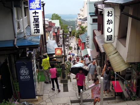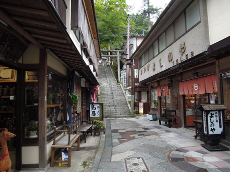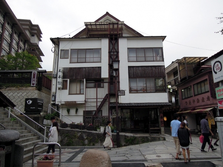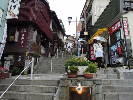 簡単に着替えをして、散歩に出た。雨が少しぱらつくが傘をさすほどでもない。説明の必要もないと思うが、石段の両側には、温泉旅館、土産物店、射的などの遊技場が並び、独特の景観を作り上げている。