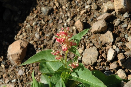 二の池新館の前から、まず二の池本館の方向に進む。あちこちに高山植物が群生している。本館の建物のわきからアルマヤ天を眺める。摩利支天に登る途中で見たときとは、山容がずいぶん違って見える。